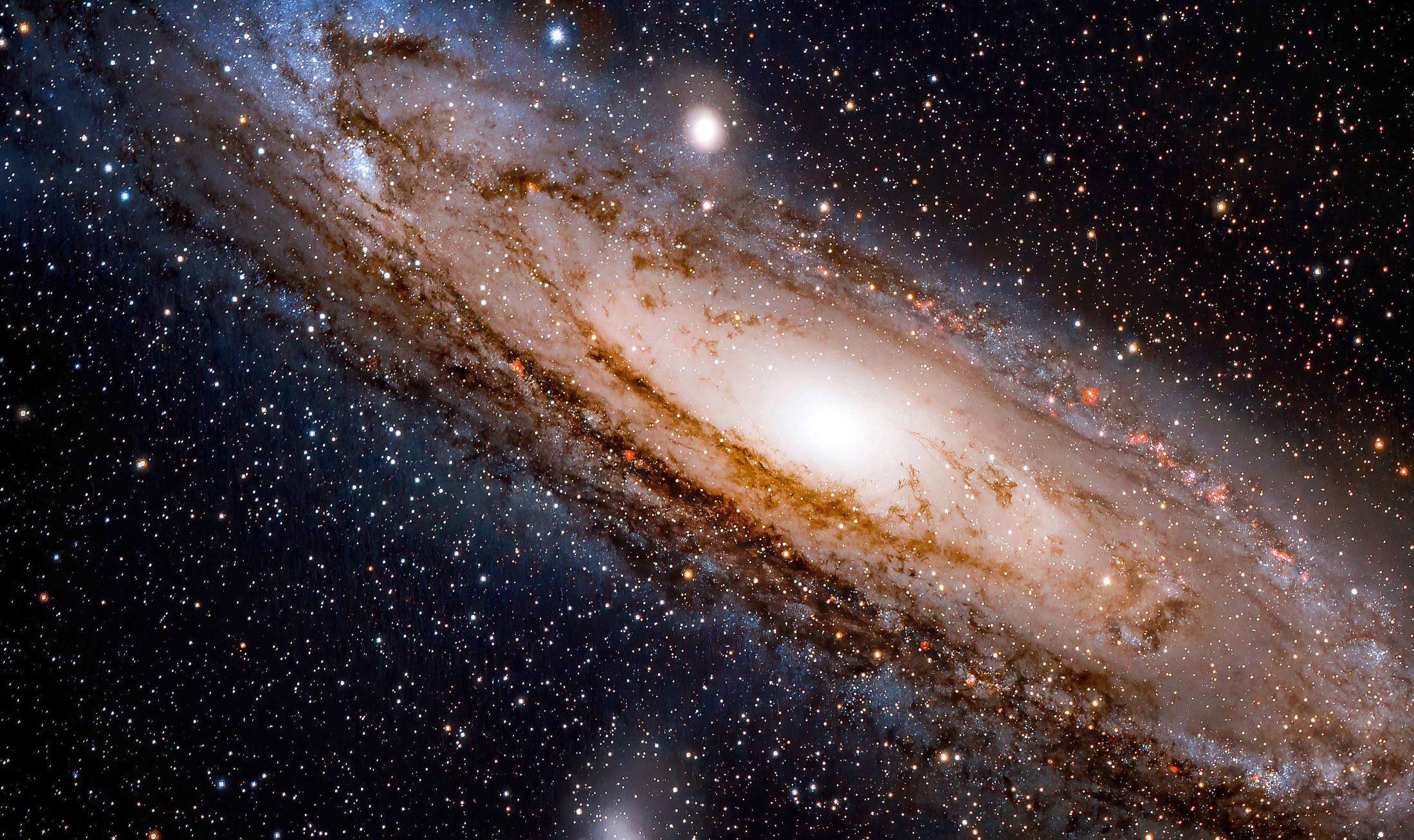 2. Taille et masse : Andromède est plus grande que la Voie lactée en termes de taille et de masse. Elle contient environ un trillion d'étoiles, soit environ le double du nombre d'étoiles dans la Voie lactée.